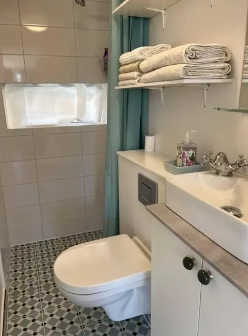 Afløbet var lidt langsomt i brusenichen så jeg vaskede ikke hår. Der var heller ikke så meget tryk på vandet. Jeg havde booket spa så vaskede bare hår der.
